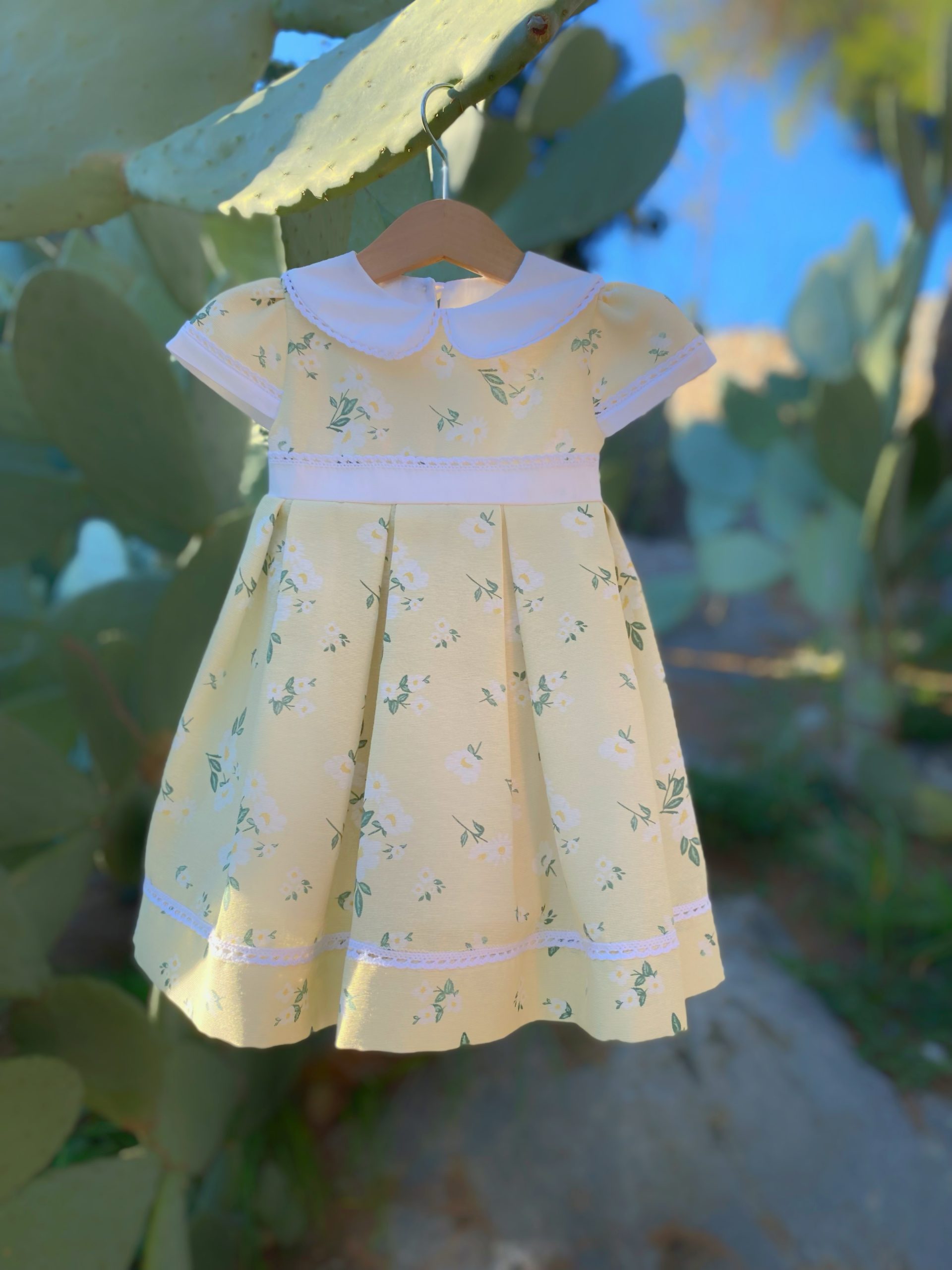 Εντυπωσιακό φόρεμα για τις μικρές μας φίλες. Βαμβακερό υφασμα με μαργαρίτες . Δαντέλα για λεπτομέρεια στα μανίκια και στο κάτω του φορέματος. Με λευκή ζώνη που δένει πίσω . Απλό και ταυτόχρονα κομψό!